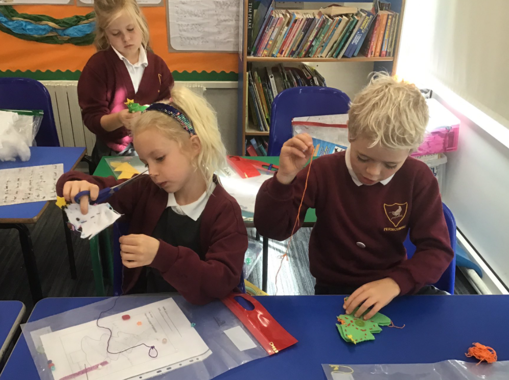 Sewing Christmas decorations in Year 4… it’s never too early!
