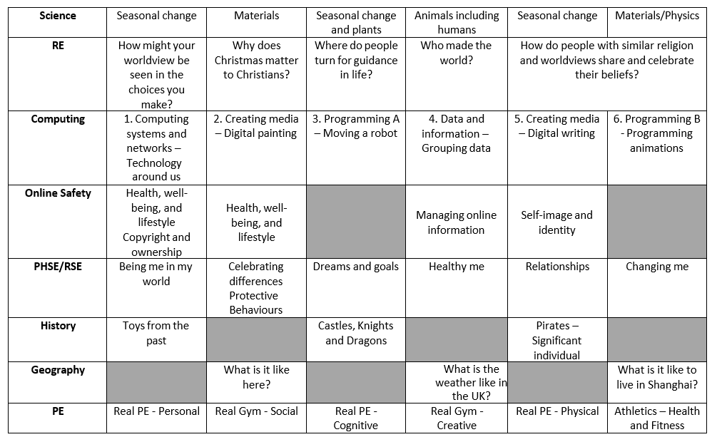 Year 1 will have PE on a Wednesday. Please ensure that your child comes into school wearing their PE kit on this day. It is really important they have a kit that is suitable for indoor and outdoor weather as we will be outside when the weather permits. Children should wear a white T-shirt. black/navy joggers and trainers. They should also wear their school jumper.